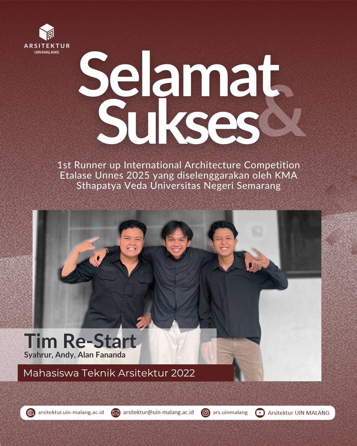 Mahasiswa Program Studi Arsitektur UIN Maulana Malik Ibrahim Malang turut berpartisipasi dalam kegiatan AFAIR UI Forum & Student Presentation 2026 yang berlangsung pada Selasa, 20 Januari 2026 hingga Senin, 26...