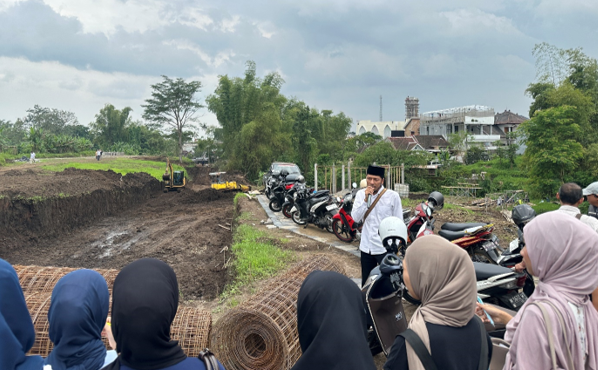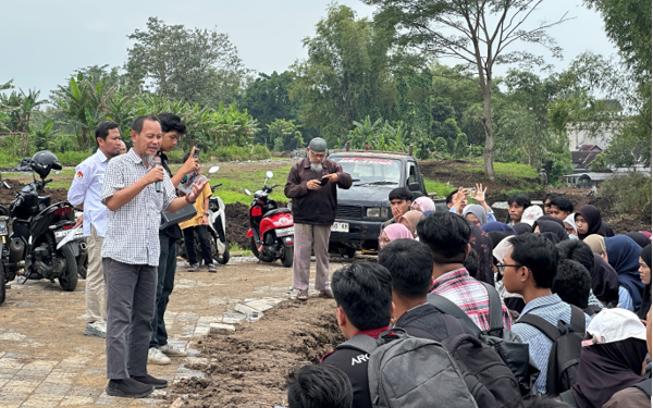 Dalam kegiatan tersebut, mahasiswa mengamati secara khusus proses cut and fill yang diterapkan pada lahan berkontur di lokasi proyek. Proses ini dilakukan untuk meratakan permukaan tanah dengan cara memotong bagian tertentu dan menimbun bagian lainnya secara seimbang. Mahasiswa mempelajari bagaimana perhitungan volume tanah dilakukan agar efisien dan tidak menimbulkan dampak lingkungan yang signifikan. Selain itu, mereka juga memperhatikan aspek teknis seperti stabilitas tanah dan sistem drainase yang diterapkan. Para dosen memberikan penjelasan langsung di lapangan mengenai langkah-langkah yang dilakukan dalam proses tersebut. Mahasiswa juga diberikan kesempatan untuk bertanya dan berdiskusi terkait kendala yang mungkin muncul dalam pengerjaan proyek. Hal ini membantu mahasiswa memahami kompleksitas dalam pengolahan lahan berkontur secara lebih mendalam.